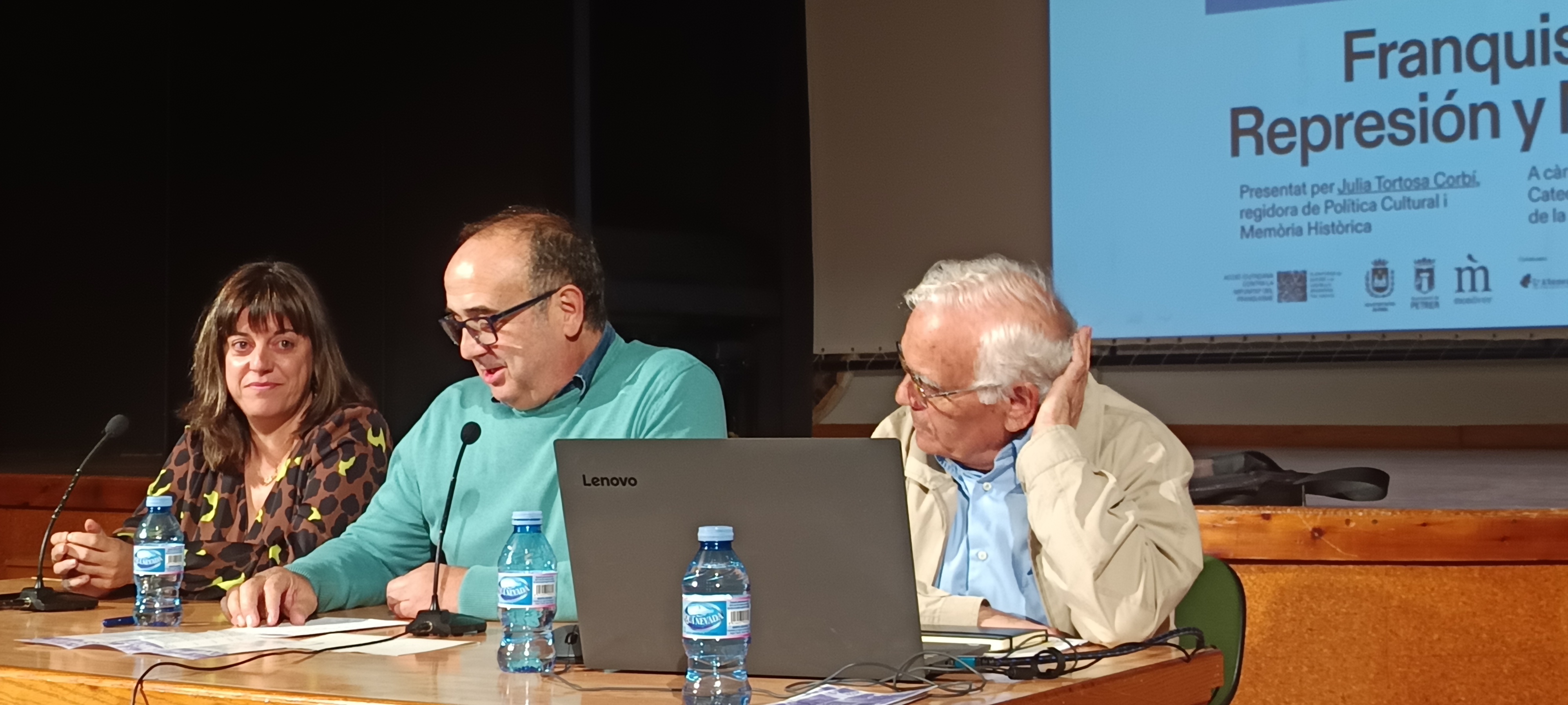 El viernes 7 en la Casa de Cultura de Monòver el profesor Glicerio Sánchez diseccionó el franquismo y su violencia brutal desde el golpe de estado de 18 de julio de 1936. Nos acompañaron en la mesa el alcalde de Monòver Loren Amat y la Concejala de Memoria Democrática Julia Tortosa. Mas de 80 asistentes escuchamos la conferencia.