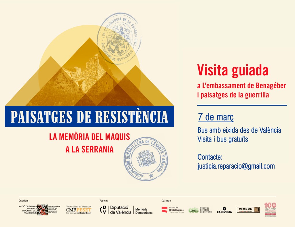 Visita i bus gratuïts. Patrocinada per l’Àrea de Memòria de la Diputació de València