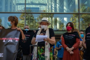 En la concentración junto a representantes de los colectivos y organizaciones convocantes estuvo la Consellera Rosa Pérez Garijo, responsable en el Govern valencià del area de Memória Democrática, expresando su compromiso con nuestras reivindicaciones: !Verdad, Justicia y Reparación!.