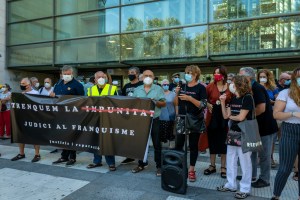 Unas horas antes de que Martín Villa compareciera en Madrid, desde la embajada Argentina, via telemática ante la jueza Maria Servini para responder por los crimenes de los que está denunciado en la Querella Argentina, en Valencia realizamos una concentración unitaria en las puertas de la ciudad de la justicia.