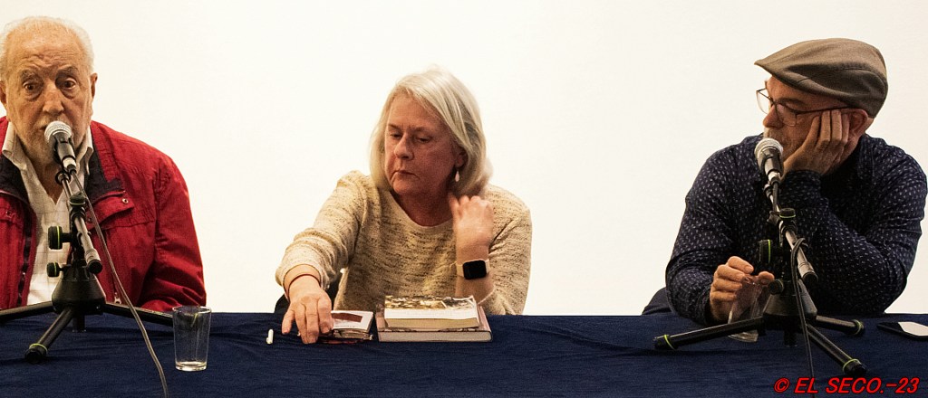 Manuel Girona nos acercó a su investigación, al impacto y el horror insoportable que le ocasionaron los expedientes de los saguntinos y saguntinas represaliados por el franquismo en los primeros años de dictadura, juicios sumarísimos rápidos acarreando muertes, testimonios falsos nunca cotejados, familias destrozadas. Venganza y atrocidades. Se quedó atrapado entre las páginas del expediente de María por la magnitud de las circunstancias que destrozaron su vida y marcó para siempre la de su familia. María Pérez Lacruz una joven obrera, anarquista que no dudó en enrolarse para defender la República amenazada de muerte por el fascismo, por los golpistas del 36. La investigación de Manuel Girona recogida en el libro «Una miliciana en la Columna de Hierro» publicado por la Universitat de València, sigue siendo un libro imprescindible. Escuchar a Manuel Girona es un privilegio.
