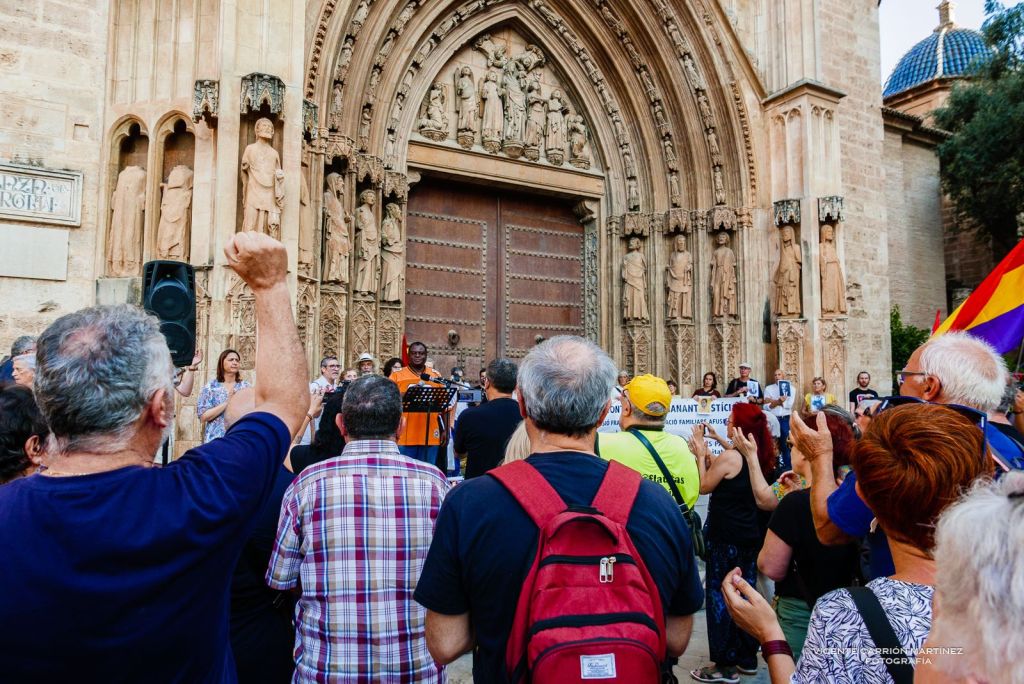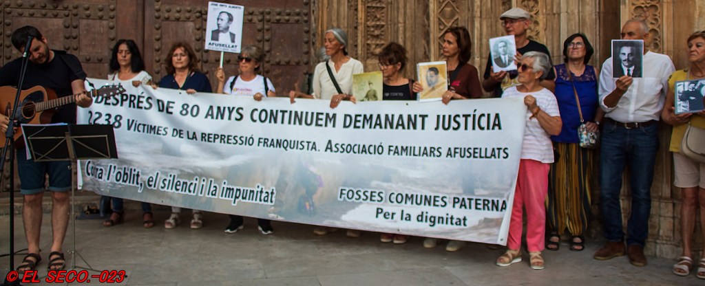 El 30 de junio, nos unimos mas de 30 asociaciones memorialistas, sociales, sindicatos y organizaciones políticas, en la Plaza de la Virgen de València, para dejar constancia de que no estamos dispuestos a aceptar ni un paso atrás en materia de memoria democrática. Ha costado mucho tiempo, esfuerzo, sufrimiento dar algunos pasos, abrir fosas y recuperar nombres y relatos silenciados. No podemos permitir desandar este camino, no vamos a retroceder porque ya rompimos el muro de olvido y de silencio.