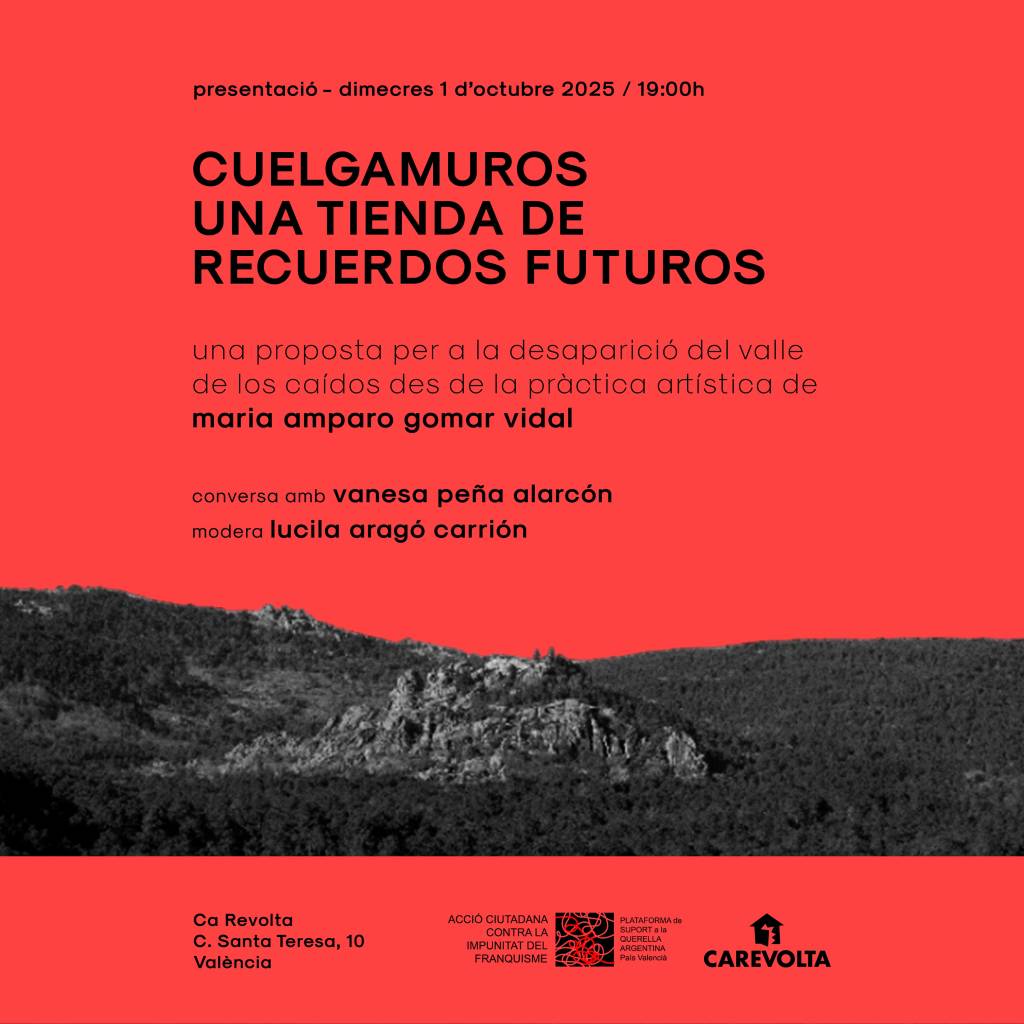 El pasado 1 de octubre presentó en Ca Revolta la artista valenciana Maria Gomar su proyecto Cuelgamuros: una tienda de recuerdos futuros, la acompañó Vanesa Peña comisaria de arte y productora cultural.