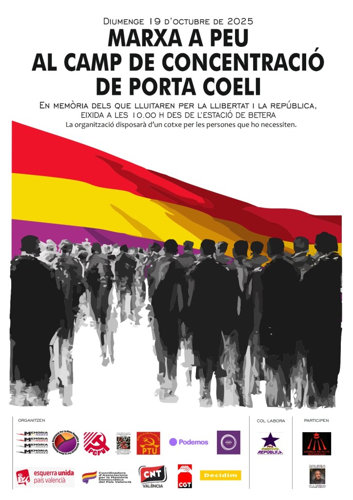 Per quart any consecutiu, el 19 d ‘octubre farem a peu el mateix camí que els presos republicans, la IV Marxa a peu al camp de concentració. S’iniciarà a les 10.00 hores des de l’estació de metro de Bétera.