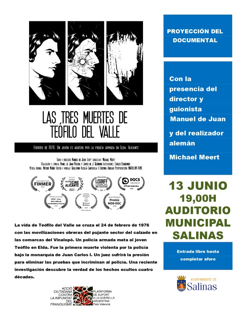 13 de junio de 2025 Auditorio de Salinas (Alacant) Con el realizador Michael Meert, script consultant en el documental y Merche Muñoz compositora de la banda sonora.