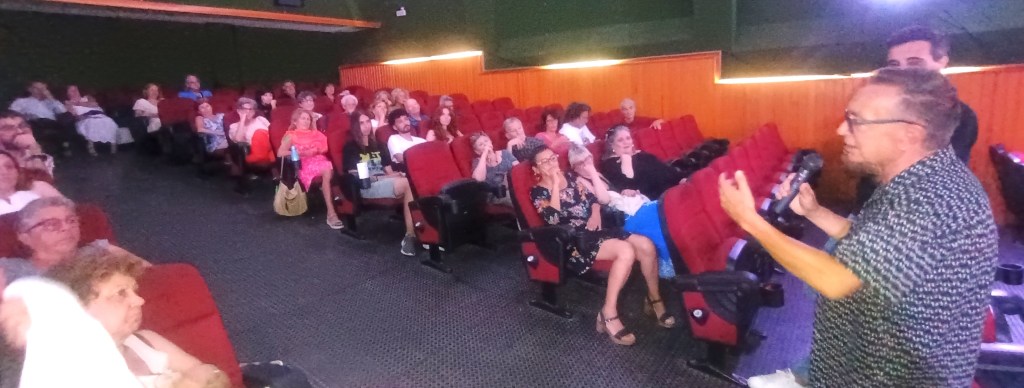 4 de julio de 2025. Festival de Cine de Alfás del Pi. Con Alias Alonso y el director del Festival en la proyección en el cine Roma