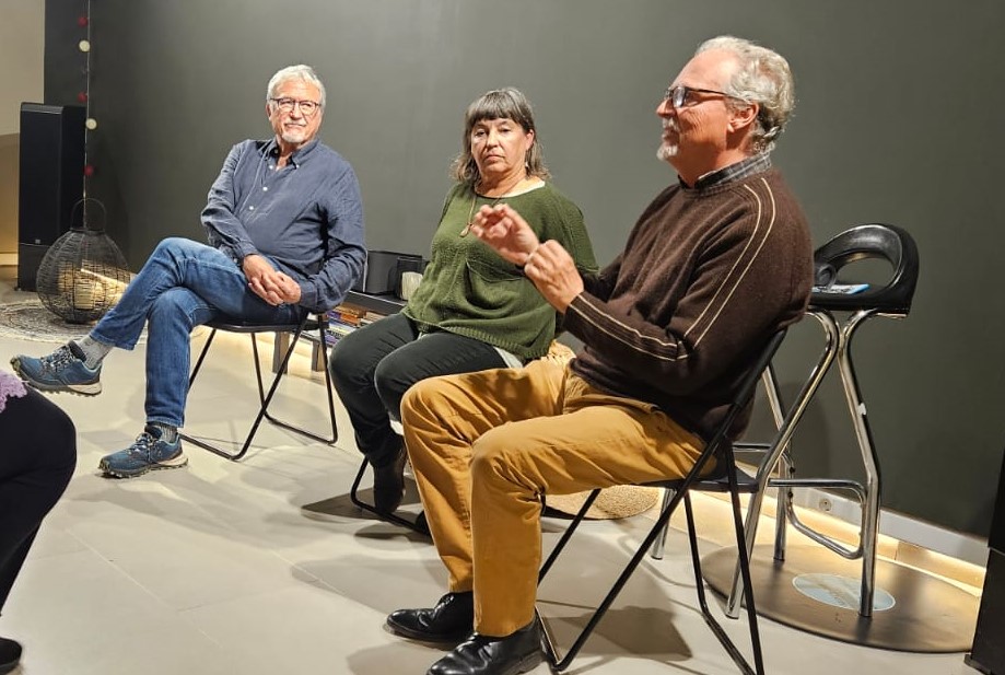 7 de mayo de 2025. Espacio Joven en Villena. Jorge Cánovas (IU) de la Comisión de trabajo para el Estudio y la Recuperación de MH de Villena. Isabel Moreno líder sindical y María Lluna Díaz (IU).