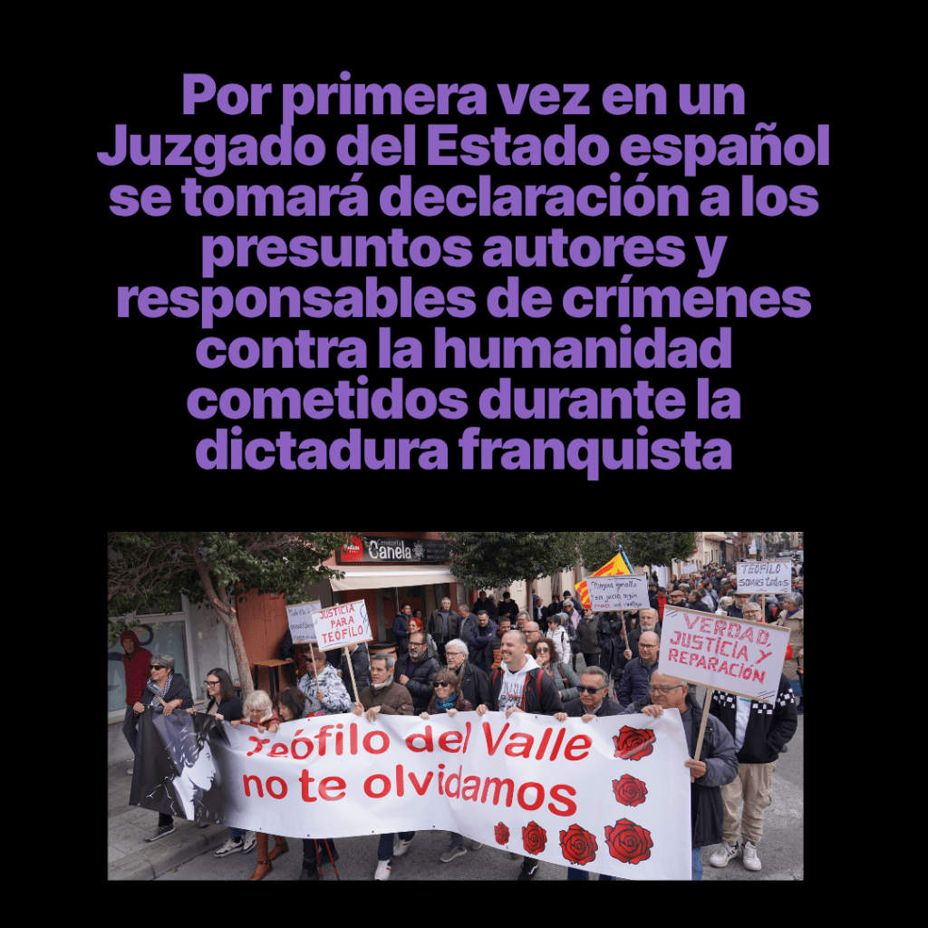 - Per primera vegada en un Jutjat de l’Estat espanyol es prendrà declaració als presumptes autors i responsables de crims contra la humanitat comesos durant la dictadura franquista.
