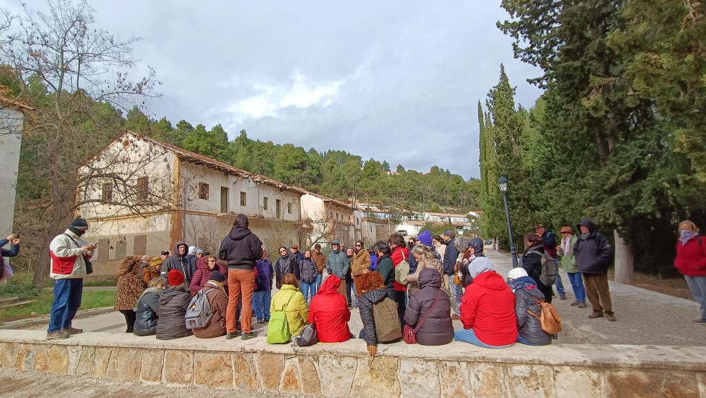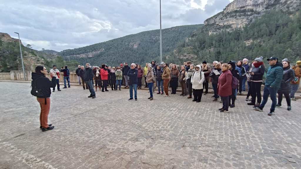 Aquest dissabte el temps era desapacible i fred. Una oportunitat que va aprofitar la guia de la visita, l’arqueòloga Andrea Moreno, per a posar-nos en situació: imaginar-nos en aqueix entorn, aïllat, en els anys 40 encara més, treballant en la construcció de la presa que ara mirem des de dalt, amb tot just un jersei de llana com tot abric. Mal menjant. Vigilades per guàrdies de presons i guàrdia civils.