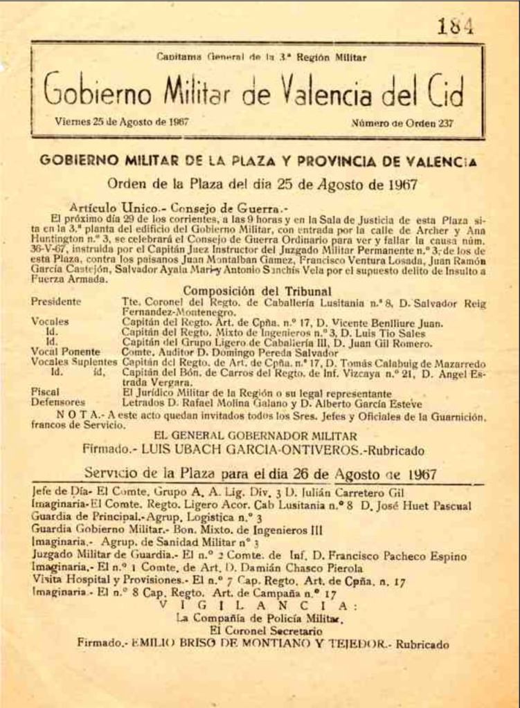 Cinquanta-cinc anys després, sis d’ells presentaran davant els jutjats valencians querelles per haver estat objecte de tortures. Reclamen la Justícia que l’Estat els deu, com a tantes altres víctimes de la repressió franquista: Exigeixen el dret a la Veritat, a la Justícia i a la Reparació.