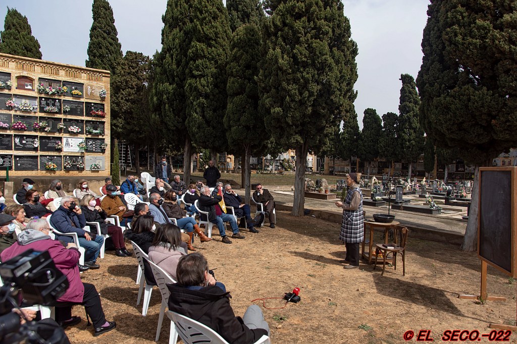 El 28 de marzo, en el aniversario de la muerte del poeta Miguel Hernández, se conmemora, segun la Ley de Memoria Democrática de la Comunidad Valenciana, el día de las víctimas de la represión y la dictadura franquista. Este año la Conselleria responsable de los temas de Memoria organizó diversos actos, una delegación de nuestra asociación participamos en el realizado en Paterna, junto a las tumbas y las fosas solo exhumadas en parte: unas palabras de la Consella Rosa Perez Garijo y la representación teatral de ‘Vidas Enterradas’, obra producida por L’Om Imprebís, Micomicón Teatro, Teatro Corsario y Teatro del Temple, con textos de Mafalda Bellido, Juan Mayorga, Juan José Millás, Alfonso Plou, Laila Ripoll y Pepe Viyuela, e interpretada por Mariano Anós, Luis Miguel García, Carles Montoliu, María José Moreno, Mateo Rubistein y Pilar San José.
