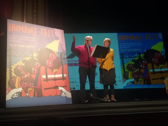 Fotografías con Chato Galante durante la inauguración del Human Fest y la proyección del documental El Silencio de otros, en las fotografias también están Llum Quiñonero y Concha Blat.